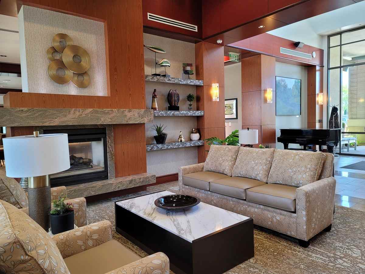 The design team chose classic light warm neutral tones in paint and strategically placed wallcoverings to enhance the existing classic materials. High-performance carpet tied together the old and the new with subtle patterns and monochromatic colors. Care was taken to select durable and easy to maintain fabrics for upholstery as well as arm and seat heights to accommodate varying mobility needs. The result was a fresh current appearance and a brighter, more open yet inviting overall feeling throughout.